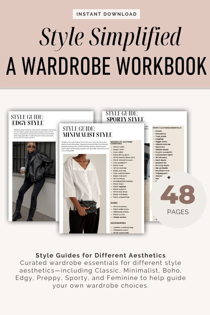 ✔ Style Guides for Different Aesthetics – A little inspo never hurts! Get a quick list of wardrobe staples for different styles to help guide your own wardrobe choices.